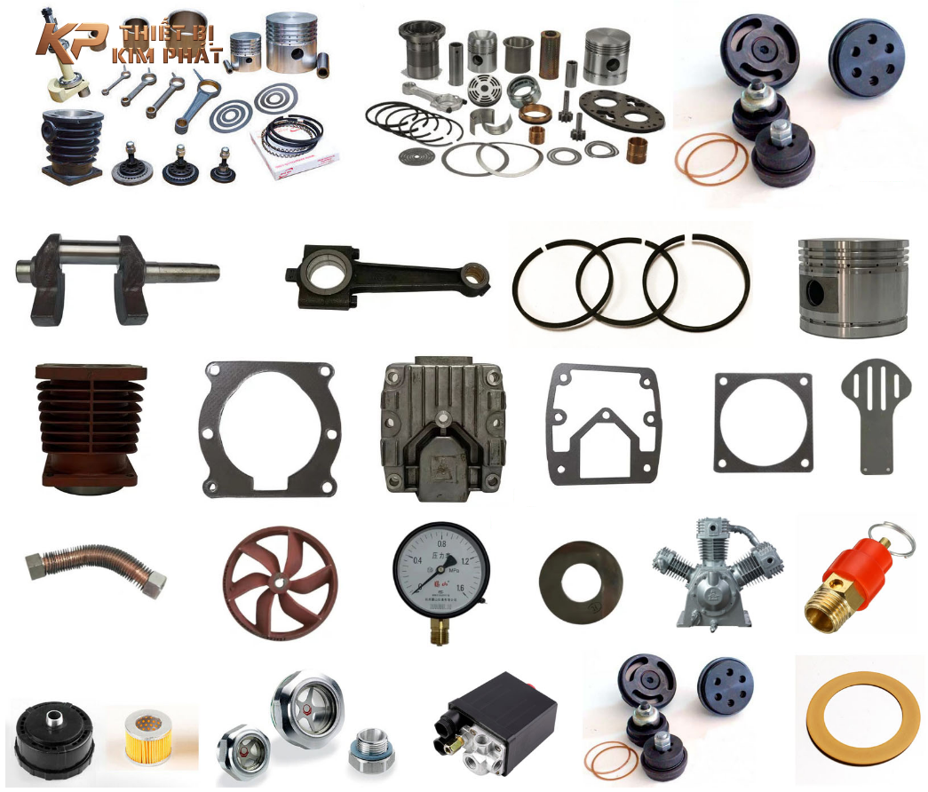 Dưới đây là danh sách các phụ tùng máy nén khí thường xuyên phải kiểm tra và thay thế, hiện đang được phân phối đầy đủ tại kho của Công ty Thiết bị Kim Phát:
